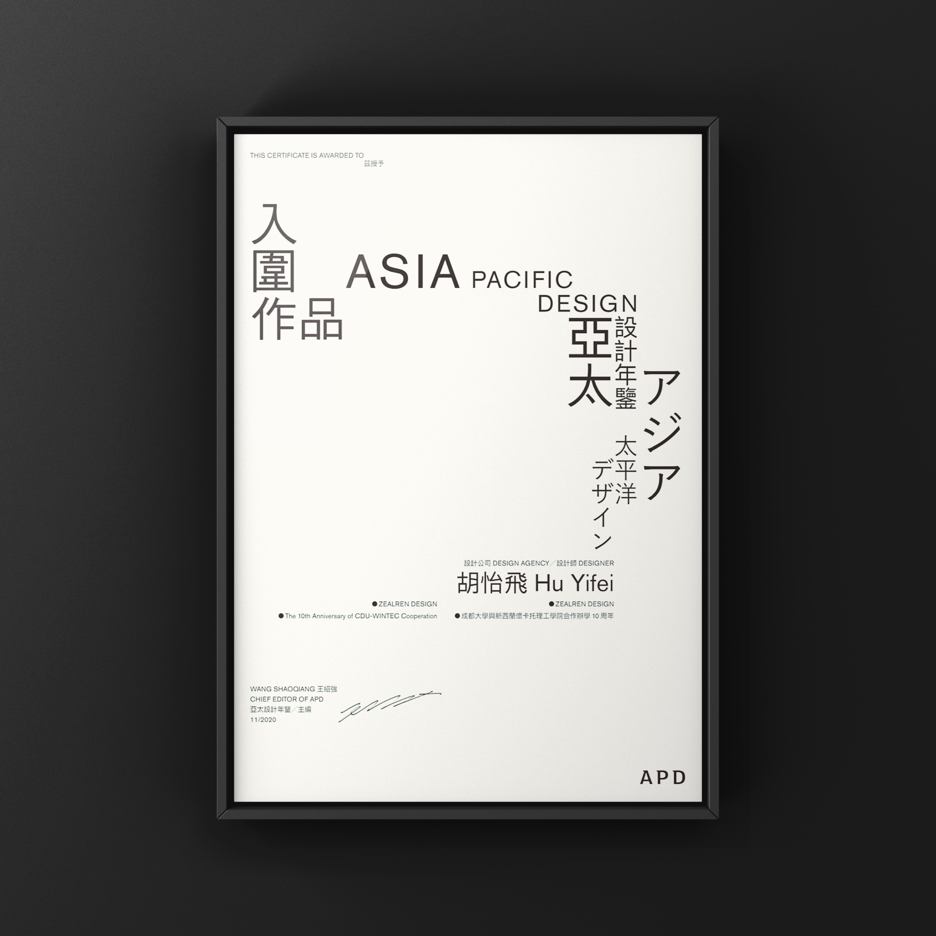 且连续多年入选亚太地区设计行业权威设计年鉴《亚太设计年鉴》《日本字体设计年鉴》《Brand 创意呈现》等;设计作品也于纽约、北京、深圳、杭州、南京、中国台湾等多地展出。