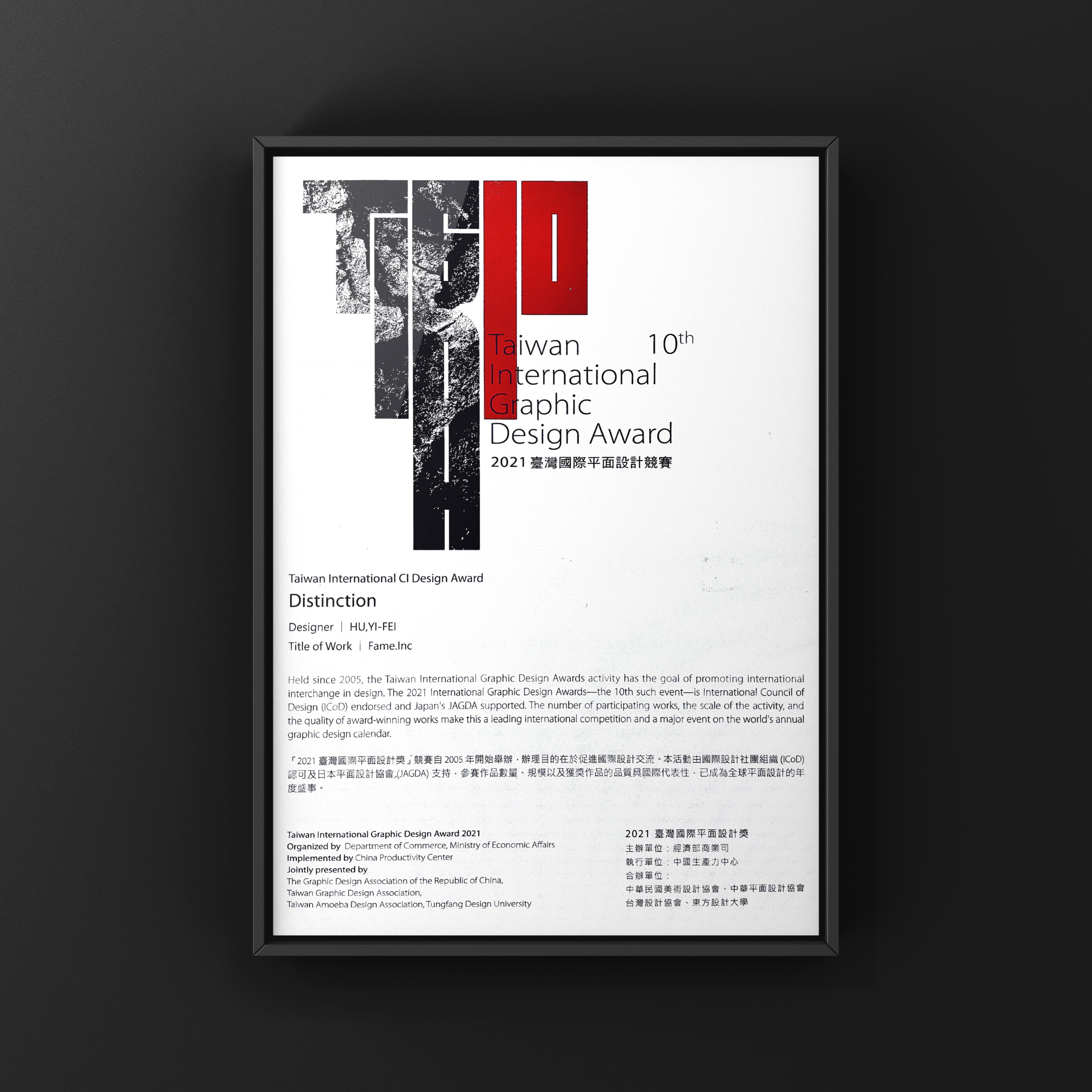 作品获得纽约TDC、美国MUSE设计奖铂金奖及银奖、Hiiibrand 国际标志与品牌设计奖评审奖及铜奖、亚洲设计大奖、美国STA 100、GDC Award、靳埭强设计奖、台湾国际平面设计奖、方正奖、白金创意国际平面设计奖、国际视觉艺术理事会奖等。