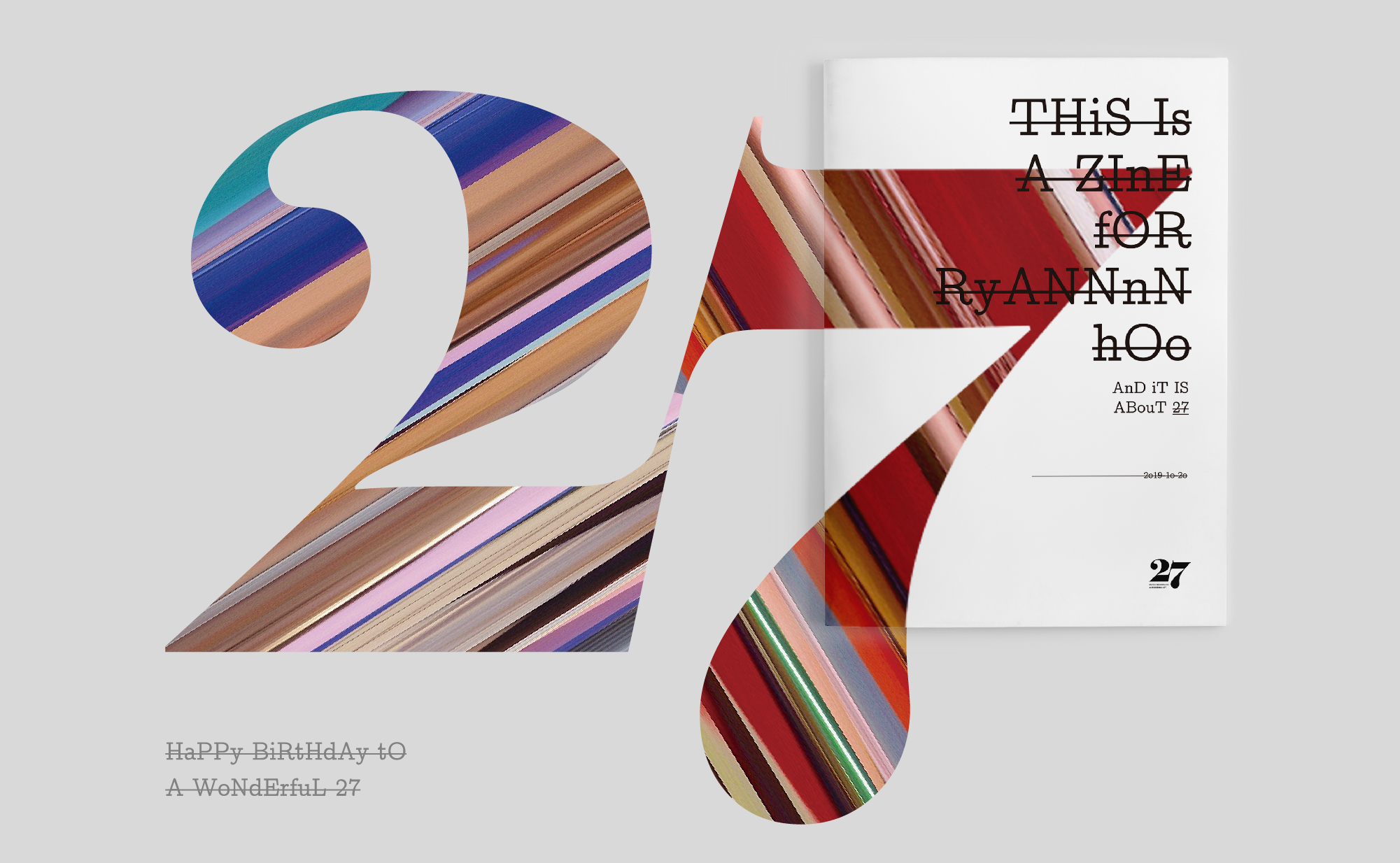 大小写错列的文字导致了有障碍的阅读但依旧能获得准确的信息,是要提醒自己在混乱中也要有清醒的认知;划掉的文字是要告知自己要有自我否定的勇气和智慧,它会成为进步的动力。色彩扭曲而又交错的视觉是一个有趣的偶然。那其实是我自己的照片,因自拍时手机相机出现故障产生的。
